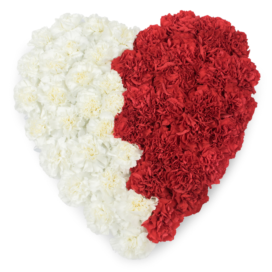 - Colors: Contrasting white and red carnations